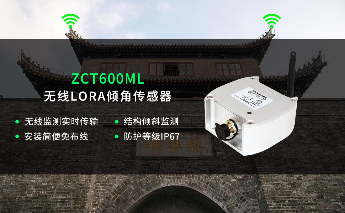 型號為ZCT600ML的無線傾角傳感器主要用于古建筑整體穩(wěn)定性監(jiān)測、傾斜、沉降等發(fā)展?fàn)顩r,整體坍塌或者傾斜檢測;局部構(gòu)件監(jiān)測,對主要受力部分進(jìn)行應(yīng)力應(yīng)變、位移、變形等監(jiān)測、自動(dòng)報(bào)警監(jiān)測等。其產(chǎn)品可達(dá)到0.001的精度,分辨力極強(qiáng),高達(dá)5000米的工業(yè)級別傳輸距離,為古建筑的保護(hù)監(jiān)測起到了決定性的作用。