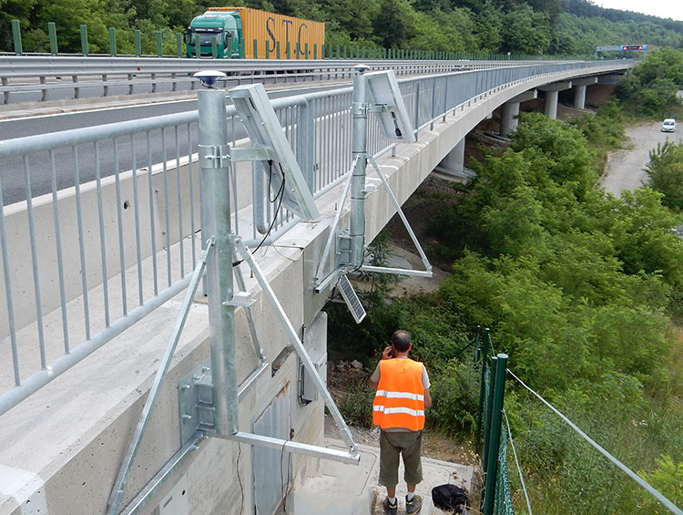 在這個山谷中穿插著多條公路,在這地理復雜的區(qū)域,GIMS團隊設計了一套地理監(jiān)測系統(tǒng)。系統(tǒng)由多個獨立的DIMS監(jiān)測單元組成。在6月18日,成功的在試驗區(qū)安裝了第一批7個監(jiān)測單元后,又陸續(xù)在其它區(qū)域安裝了多個監(jiān)測單元,7月30號,所有的監(jiān)測單元已經(jīng)按照計劃全部成功連接服務器,并且開始傳輸監(jiān)控數(shù)據(jù)。GIMS團隊將對這些數(shù)據(jù)進行為期一年的處理和分析,以開展GIMS項目框架內計劃的所有運營和實驗活動。